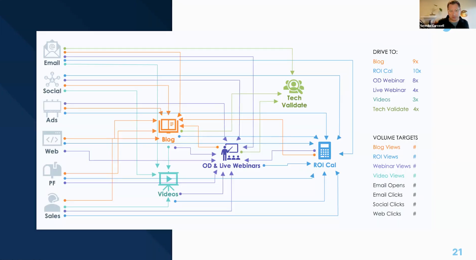 Gigamon needed help getting early-stage leads moving again and then actually sales-qualified opportunities(SQOs) from that. She designed a strategy around promoting a core set of BOFU content to help with this in an integrated campaign and focused on blog posts, webinars, and video views as her Core KPIs and campaign targets of numbers of SQOs and Sales meetings.