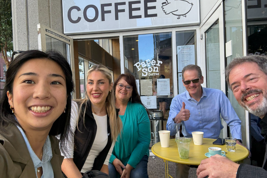 People joined at different stops, grabbed coffee, and walked together to the next stop. Some stayed for one stop, others tagged along for longer. The man with the golden voice, Marc Blackmer led the cafe tour! It gave people a way to ease into the mornings before the conference started.