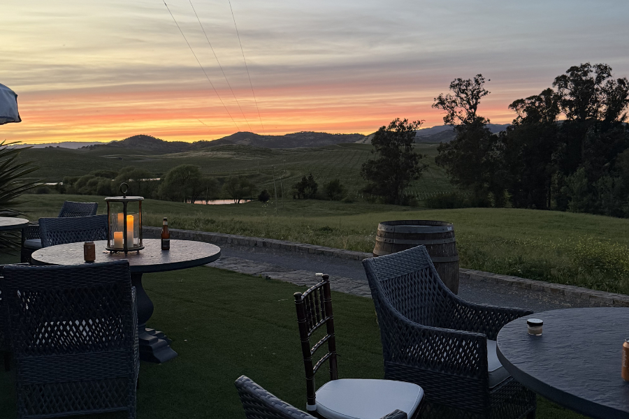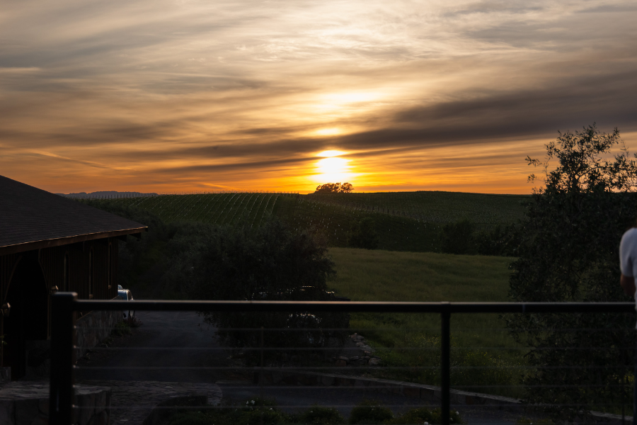 Dinner followed, along with time to walk the grounds. As the sun went down, people gathered around the olive groves and stayed through sunset before heading back to the city later that evening.
