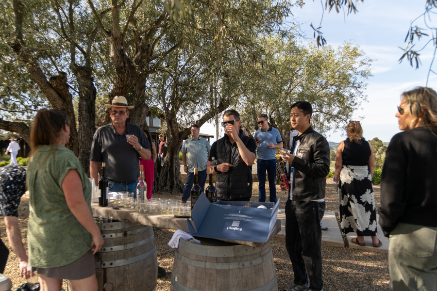 The afternoon began with wine, mocktails, and a whiskey-tasting station. Later on, there was an olive oil tasting led by Brian Allard, an olive oil producer at the estate. He walked through how olive oil is made on the property and how the flavor changes over time. People tasted both fresh and slightly aged olive oil and learned how it compares to wine in terms of production and aging.