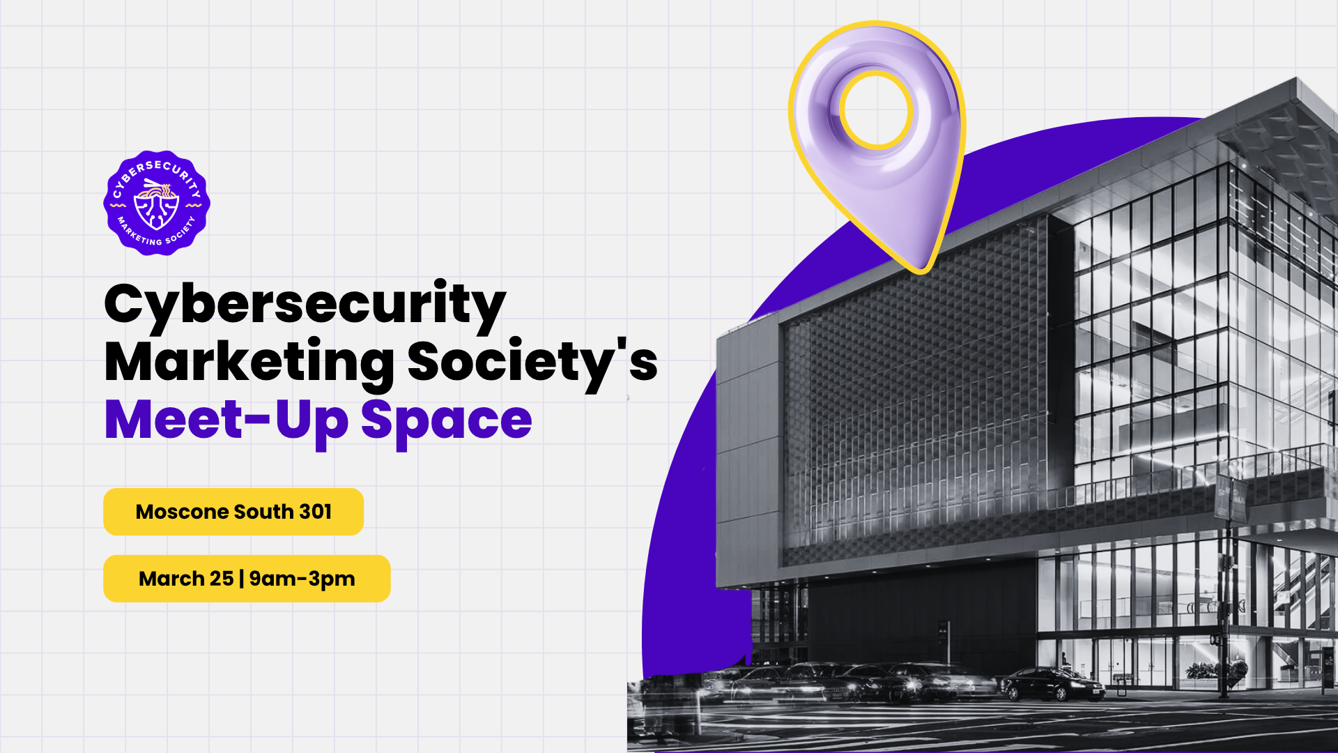 Cybersecurity Marketing Society's Meet-Up Space will be open 9am-3pm PT on Wednesday March 25th in Moscone South 301. Stop by to grab some literature on what the Cybersecurity Marketing Society has to offer!